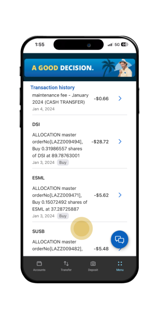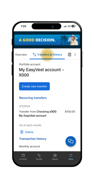 En Transferencias e Historial , puedes navegar a través de la información de tus transferencias.