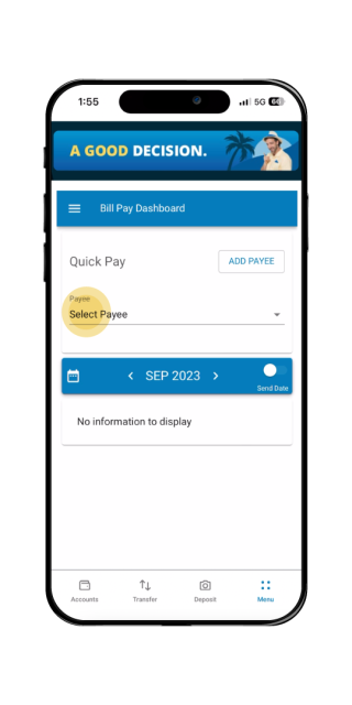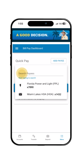 Tap the Payee you would like to pay. All payees you have added will show here.